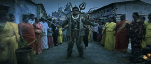 In order to appeal to a more general audience, the filmmakers invest considerable screen time into the love story. Comedians Santhanam and Karunas appear as Vaseegaran’s dim-witted assistants and provide most of the comic relief. Their scenes are often over-cranked, a film technique where the slapstick action is slightly faster and jerky. The effect is like watching Buster Keaton and the Keystone Kops try to trip up The Terminator. It’s silly, but it works.